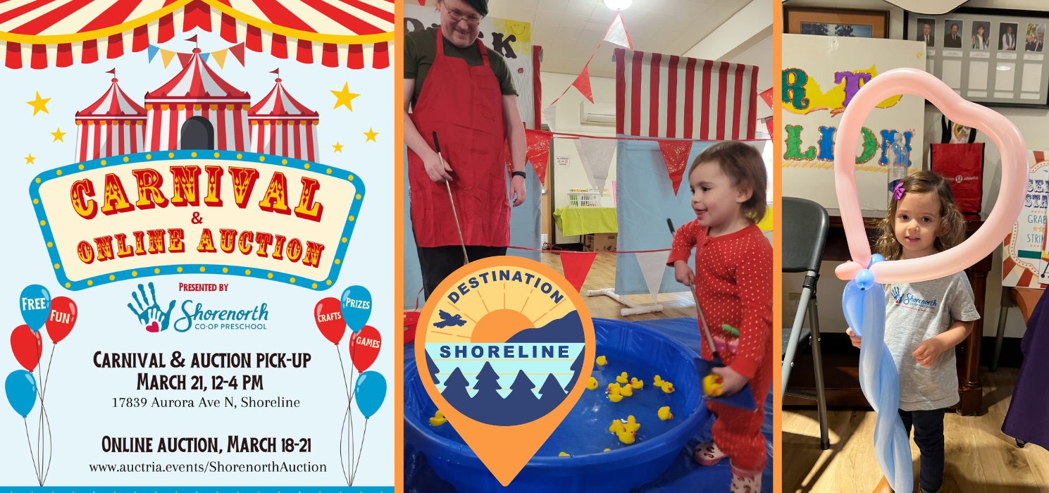 One of the things we love most about Shoreline is the way our community shows up for one another, especially when it comes to supporting local schools and families. This month, Destination Shoreline is excited to support the Shorenorth Cooperative Preschool Spring Carnival and Online Auction, a joyful, family-friendly event that brings neighbors together for an afternoon of classic carnival fun, tasty treats, and community connection.